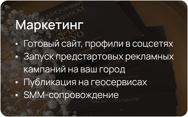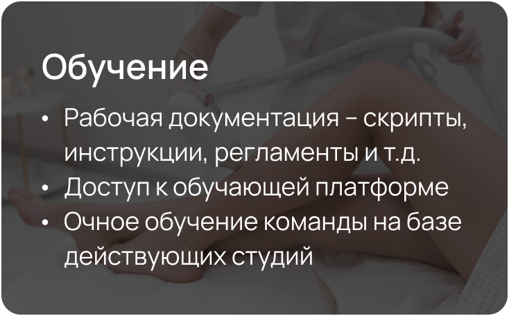 В рамках франшизы вы получите проверенные инструменты запуска и управления студией