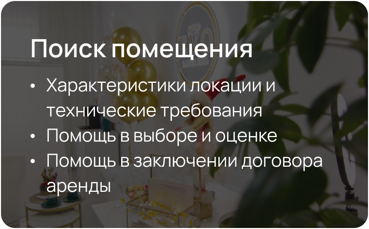 Мы продумаем каждую деталь – от оформления входной группы до стильной фотозоны внутри, и все это входит в паушальный взнос